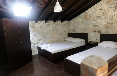 Το κατάλυμά μας αποτελείτε από 5 πέτρινες βίλες και 4 στούντιο. Ξεκίνησε το 2002 με την κατασκευή των 4 στούντιο καθώς και την περιποίηση του κήπου και των ελαιόδεντρών μας. Το 2012 κατασκευάστηκαν οι 5 πέτρινες βίλες ενώ ανακαινίστηκαν και τα στούντιο. Στόχος μας είναι να παρέχουμε ένα οικογενειακό, ξεκούραστο και ήρεμο περιβάλλον για τις διακοπές των επισκεπτών μας και ταυτόχρονα να παρέχουμε άπλετο χώρο στον καταπράσινο κήπο μας για να μπορούν να παίξουν με άνεση και ασφάλεια οι μικροί μας φίλοι.