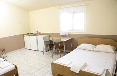 Τα στούντιο μας κατασκευάστηκαν το 2002 ενώ το 2012 έγινε η πιο πρόσφατη ανακαίνισή τους. Όλα τα στούντιο διαθέτουν ένα διπλό και ένα μονό κρεβάτι, ντουλάπα καθώς και αρκετό χώρο για έξτρα κρεβάτι κατόπιν συνεννοήσεως με το τμήμα κρατήσεων του Gioulis Apartments & Studios. Διαθέτουν εξοπλισμένη κουζίνα, τραπεζαρία με 4 καρέκλες και τραπέζι κήπου που βλέπει είτε στον μπροστά είτε στον πίσω κήπο.